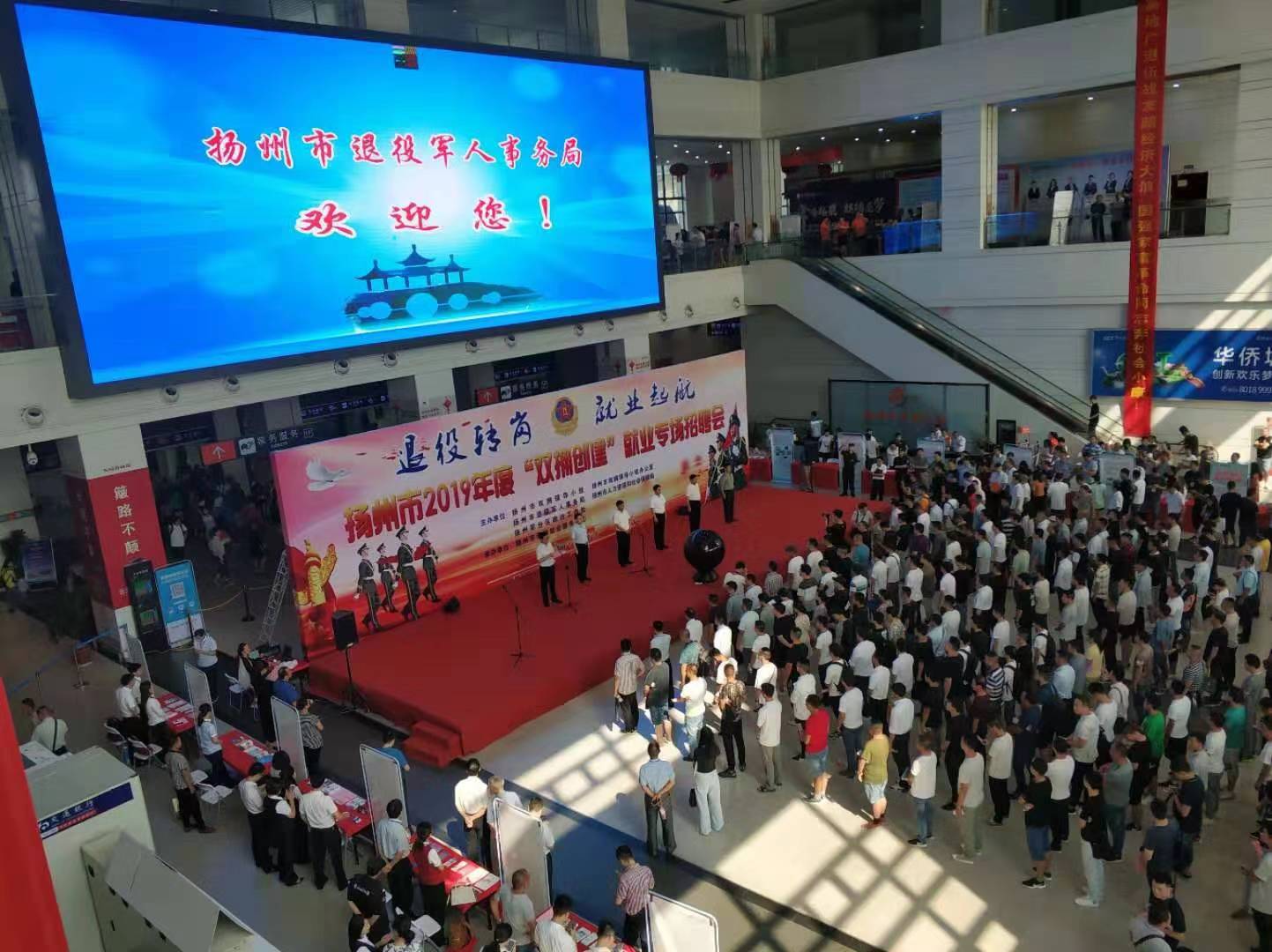 8月17日上午,揚州市2019年度“雙擁創(chuàng)建”就業(yè)專場招聘會在揚州西部客運樞紐揚州汽車站一樓大廳舉辦。會場設(shè)置50多個招聘席位,計劃安排1500個就業(yè)崗位,1200余名退役軍人及隨軍家屬參加現(xiàn)場招聘。招聘活動由揚州市雙擁領(lǐng)導(dǎo)小組、揚州市退役軍人事務(wù)局、揚州軍分區(qū)、揚州市人社局聯(lián)合主辦,旨在拓寬退役軍人就業(yè)渠道,為退役軍人和企業(yè)之間搭建起互通橋梁。