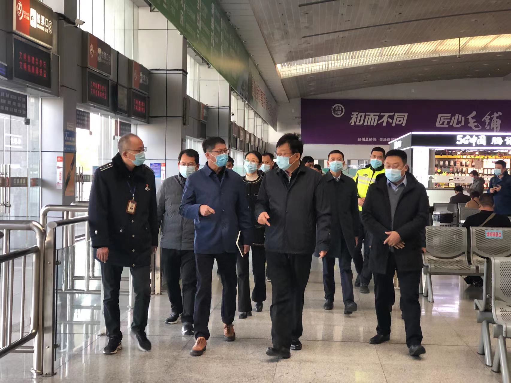 11月9日,副市長丁一帶隊來汽車東站檢查疫情防控工作,交通產(chǎn)業(yè)集團黨委副書記、副董事長、總經(jīng)理方璇智,交通產(chǎn)業(yè)集團副總經(jīng)理、揚汽集團黨委書記、董事長龔宇峰,揚汽集團副總經(jīng)理徐建波及相關(guān)部門負責人陪同檢查。
