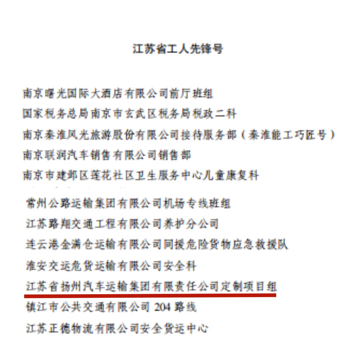 揚(yáng)汽集團(tuán)定制專線項(xiàng)目組榮獲江蘇省“工人先鋒號(hào)”稱號(hào)